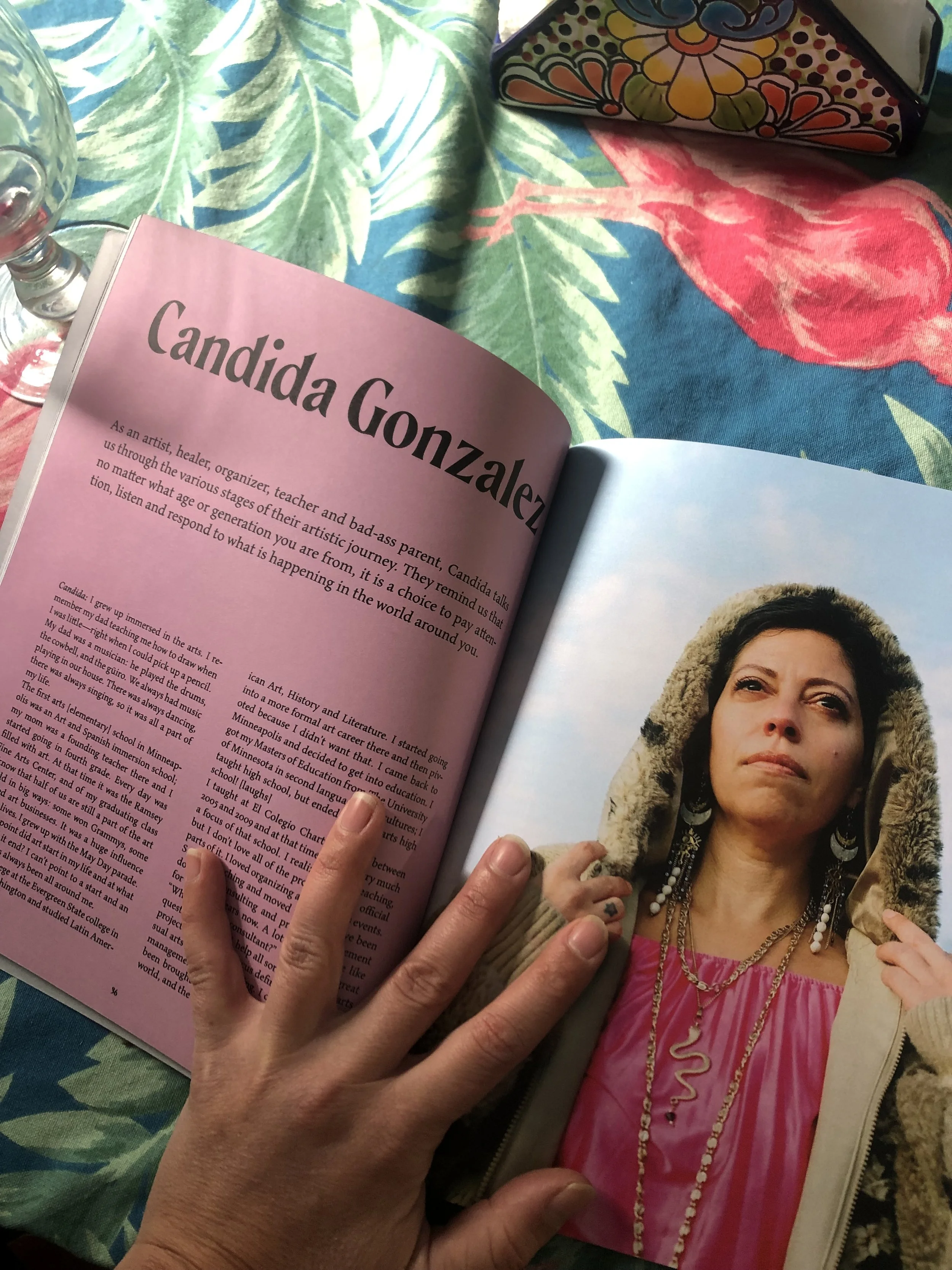 A queer, trans, non-binary mixed Puerto Rican from South Minneapolis, Cándida González (they/them) is an artist, teacher, organizer, brujx and badass single parent. They studied Latin American Art and History at The Evergreen State College and went on to get their M.Ed. at The University of Minnesota in 2003. In their 15 years of arts education work in Minneapolis they built K-12 art programs that focused on equitable arts opportunities, inclusivity of underserved populations and deeper, more accessible, culturally relevant arts experiences for youth and BIPOC communities. Through their work they have also focused on providing opportunities and development for emerging artists of color. They are deeply invested in the concept of using art and community design as tools to wage love and healing. Currently González facilitates nationwide the Making it Public workshop series for Forecast Public Art for new and emerging public artists, participates in select local arts and healing initiatives and creates mixed-media jewelry/talismans under the name Las Ranas Jewelry. Photo by Diana Albrecht.